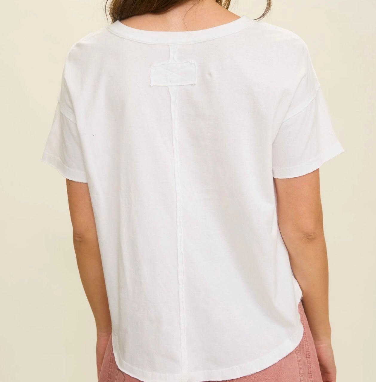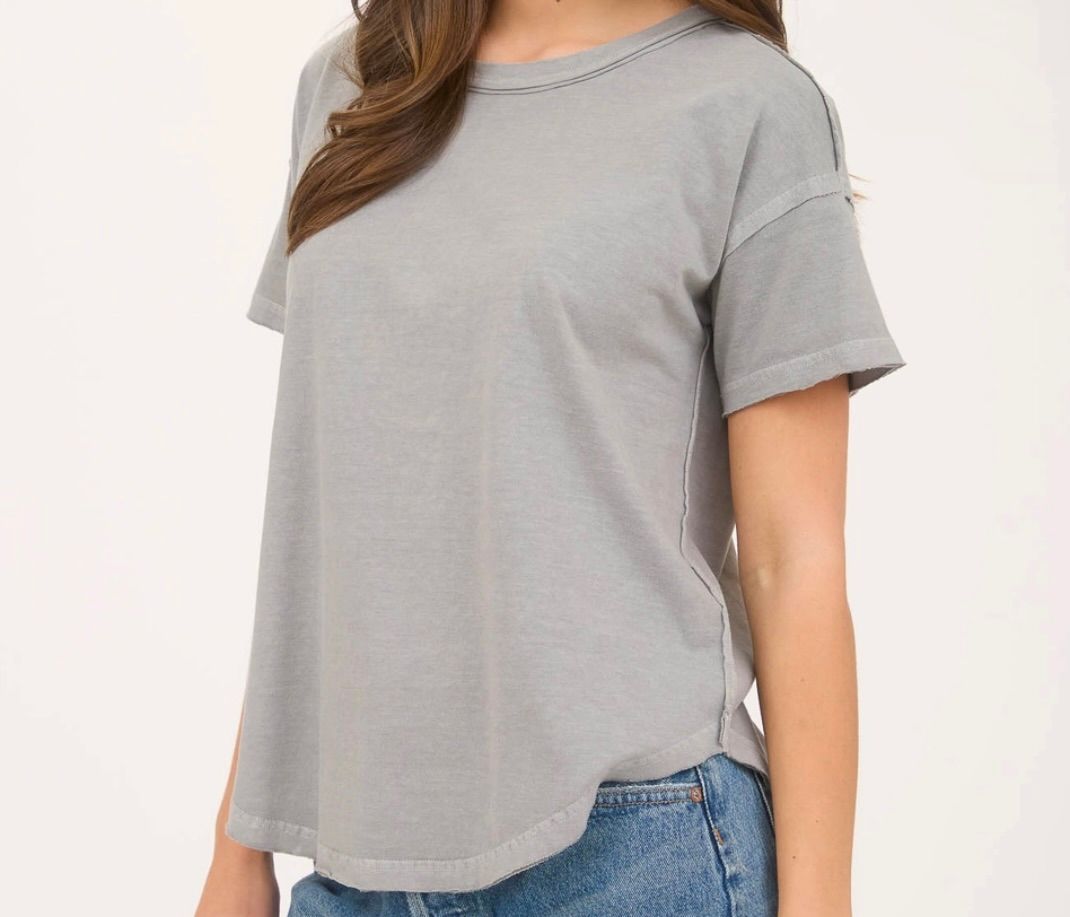 Everyday tee with exposed raw hem. Short sleeve with a drop shoulder detail. You can select color in the "STYLES" options.