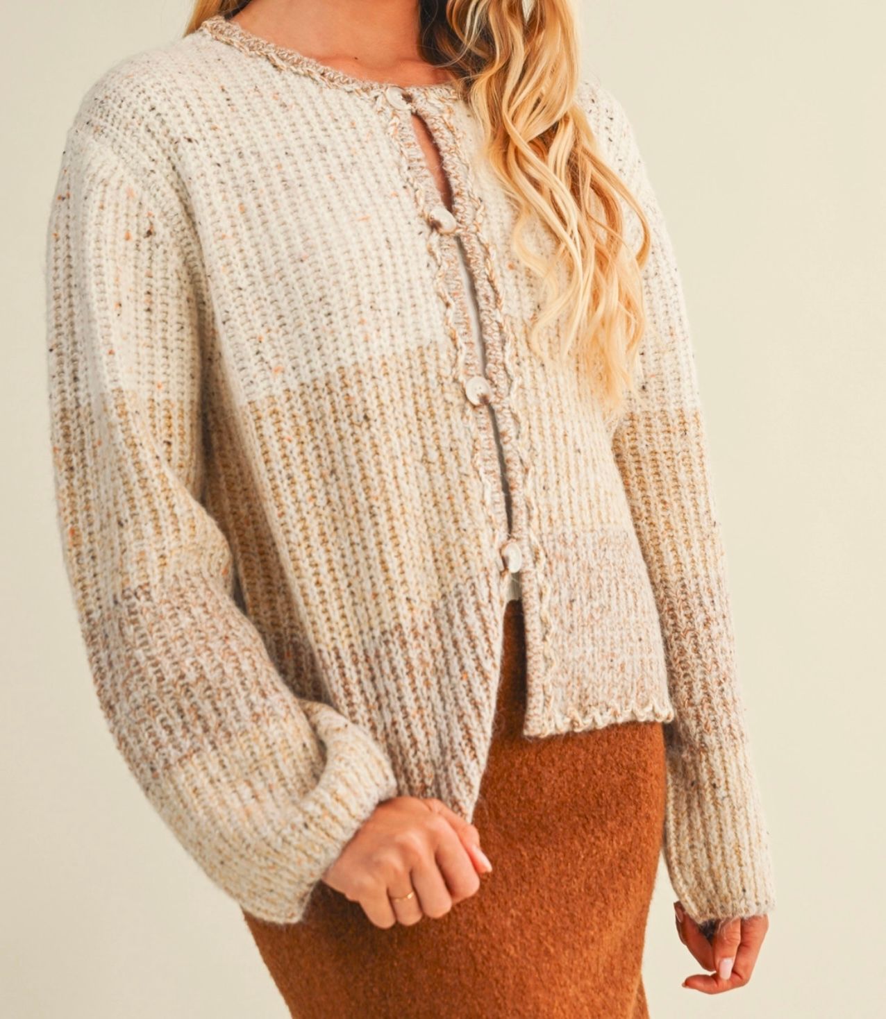True to size neutral sweater. Will be a stable piece this fall season. Dress it up or dress it down the options are endless.