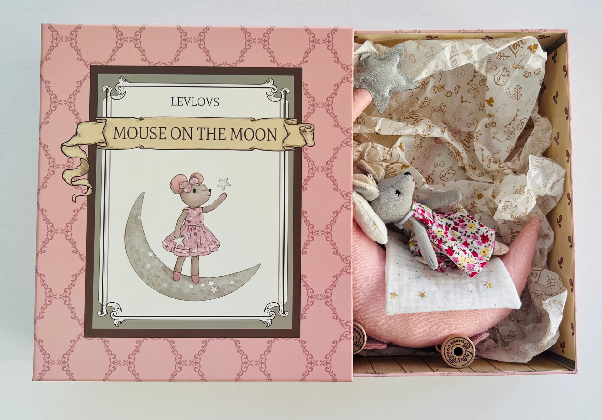 This mouse sleeps on the moon dreaming of everything pink! Moon has wheels that work and can also be removed. Darling mouse to add to any little girls room. Comes in pink box. making opening extra fun!