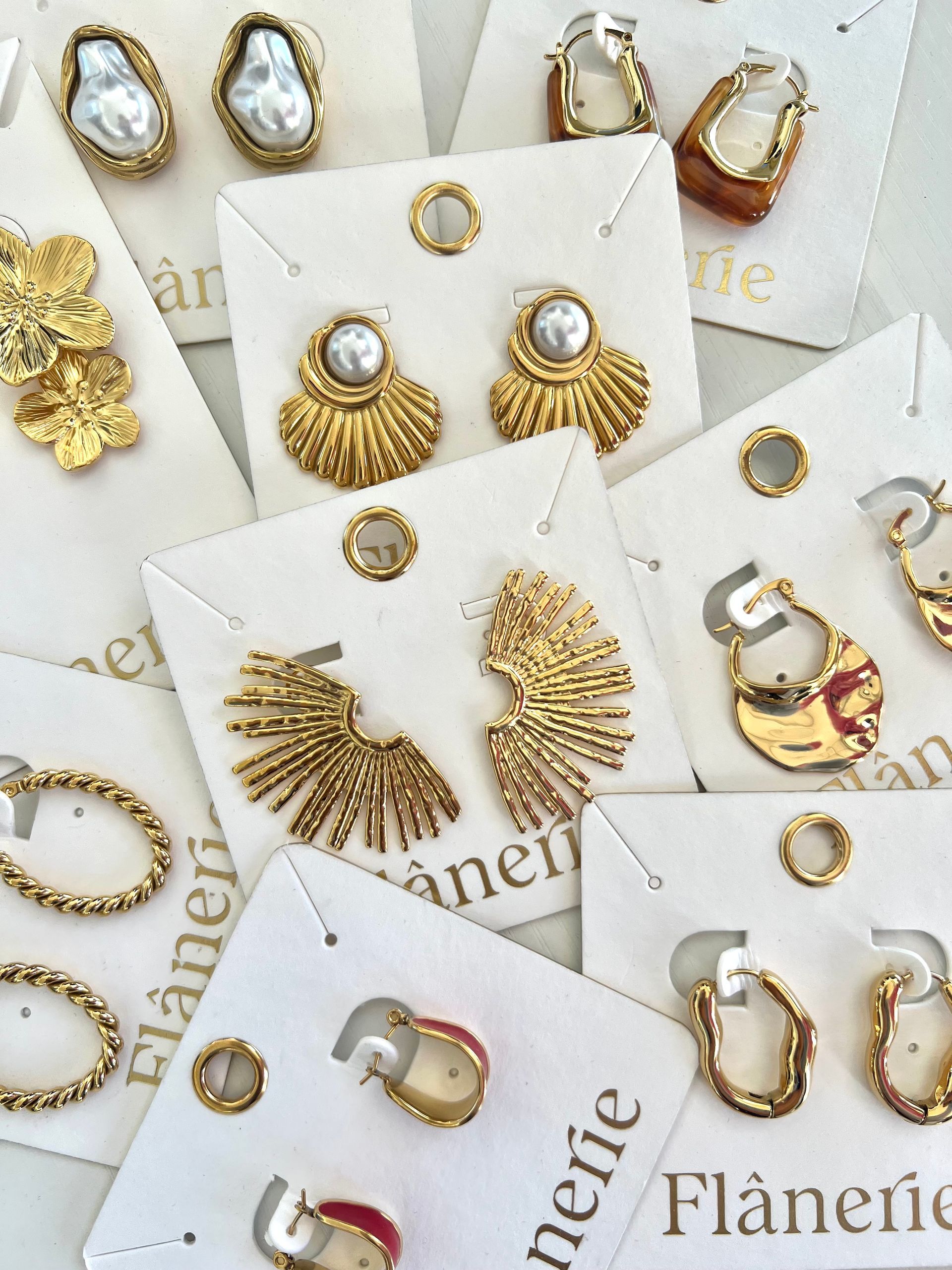 These earrings are 18K gold plated water proof, lead and nickel free, and hypoallergenic.